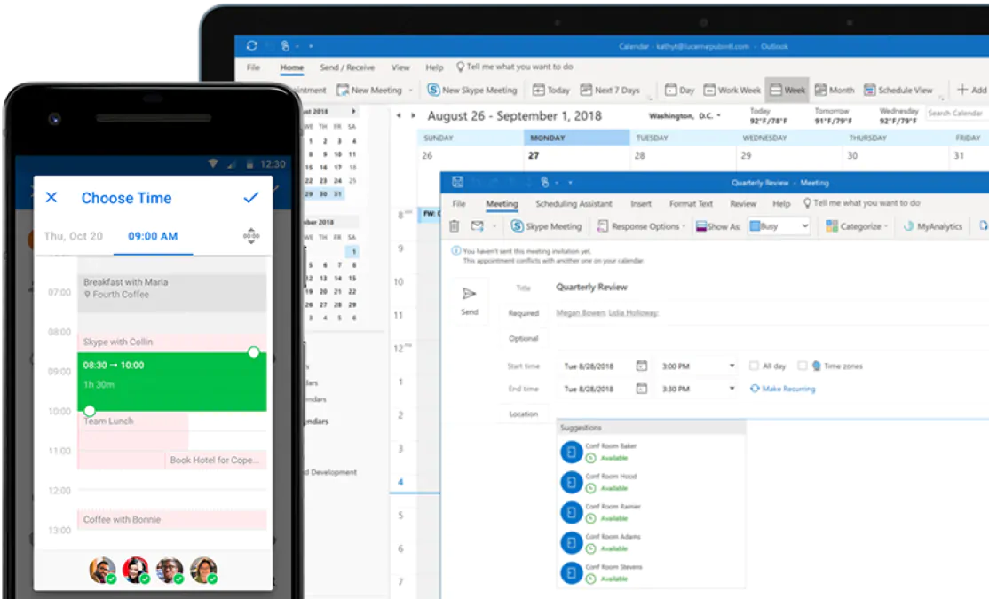 Book conference rooms and track RSVPs for meetings right from your calendar. Make plans and coordinate schedules by sharing calendars and seeing when your coworkers are available.