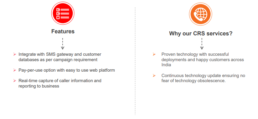 CRS solution helps you get instant feedback on your toll-free number by capturing caller information and accessing it on a real time basis through a user-friendly web interface. This helps your customers stay well informed while you gather real-time insights on your business performance.