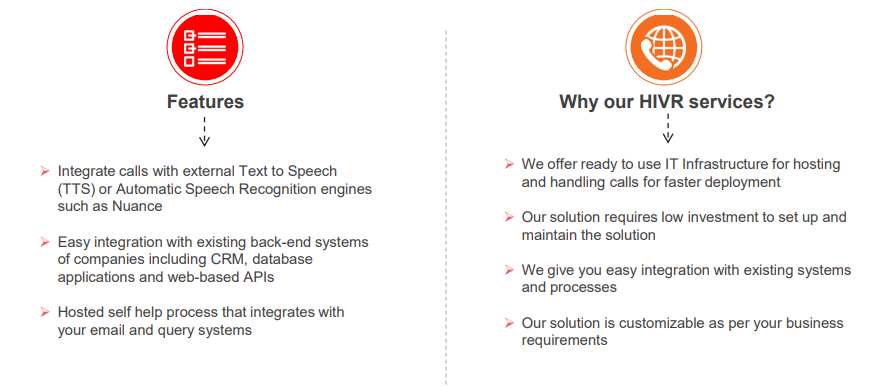 HIVR solution provides a hosted platform that significantly reduces turnaround time required to set up the customer experience business process since the necessary infrastructure is available and ready to use.